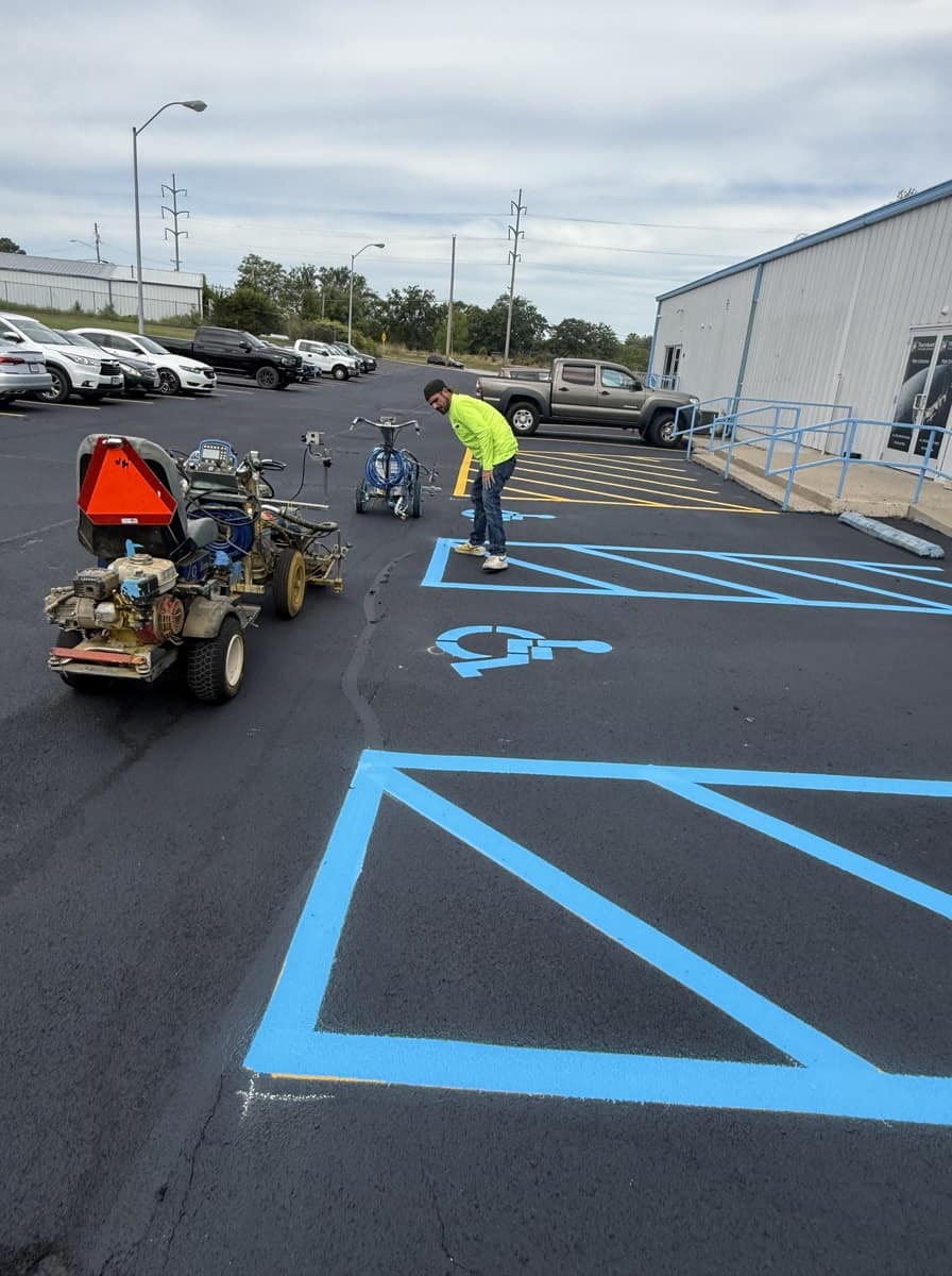 Our parking lot striping teams pay full attention to compliance, traffic flow, and aesthetic appeal. We work with you to design and execute layouts that align with ADA regulations, optimize parking capacity, and improve overall safety. From clearly marked stalls and directional arrows to loading zones and fire lanes, we ensure every line and marking is accurately placed and highly visible. Your lot will look professional and perform effectively for years to come.